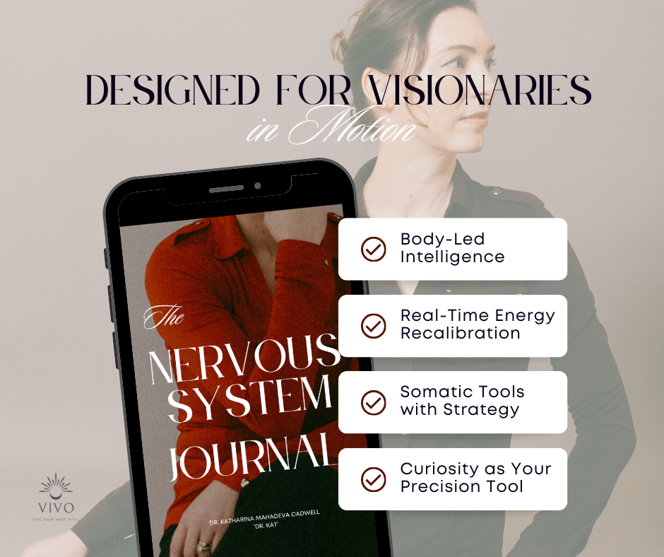 A somatic, body-intelligent method for building energy, clarity, and capacity from the inside out, so your nervous system stops surviving your life and starts designing it.